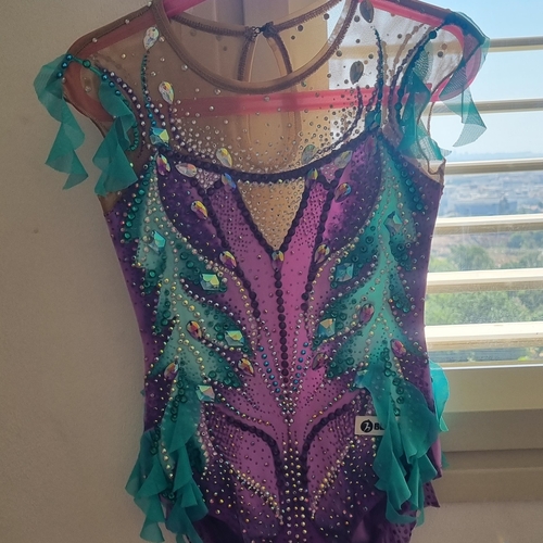 בגד גוף מהמם בגוונים של סגול וטורקיז של המותג נשמר בצורה קפדנית. מנצנץ ומרשים. מאור יהודה או חולון 0542606745