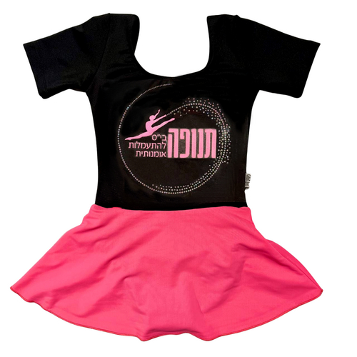 בגד גוף שחור עם חצאית ורודה ולוגו TNUFA
